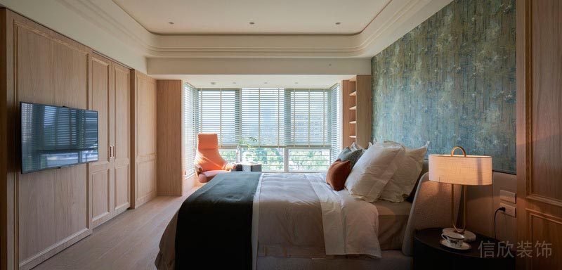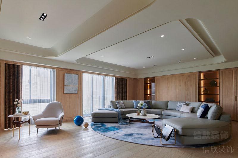 大面積的原木風地面,和護墻板的引用,寬闊明亮的客廳設計,是對自然生活美的一種向往。
