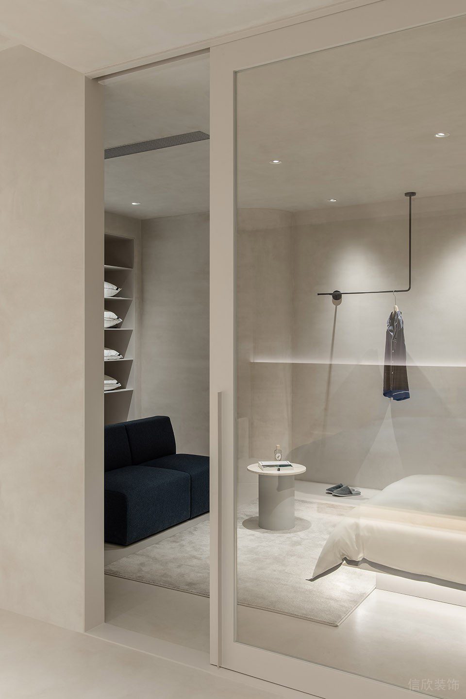 設(shè)計理念:本案是一所現(xiàn)代風(fēng)的新型科技枕頭專賣店裝修設(shè)計案例,由深圳信欣裝飾公司的設(shè)計師團隊傾力打造,該作以現(xiàn)代風(fēng)格入手,門廳以落地窗玻璃,讓光線完美的引入到室內(nèi),提高了室內(nèi)光線的亮度,也讓室內(nèi)的布置和特點展示的一覽無余,讓人走道店門口就能看到店鋪的主推和展示,起到了宣傳的效果。室內(nèi)采用了大面積的中性色調(diào)設(shè)計,賦予了一種自然,舒適和雅致的情調(diào)。頂面通過長條形的燈膜分割,柔和的燈光,延伸感讓整個空間更飽滿更開闊。白色LOGO的發(fā)光字設(shè)計,看上去更醒目更亮眼。所有島臺和家具的展示,通過點,線,面三個方面的組合,不僅凸出了黑灰兩色家具的線條美,還能更好的還原產(chǎn)品的美感和高級感。整個場景通過柔和的燈光對比,讓整個環(huán)境產(chǎn)生了一塵不染的清新脫俗的氣質(zhì)。