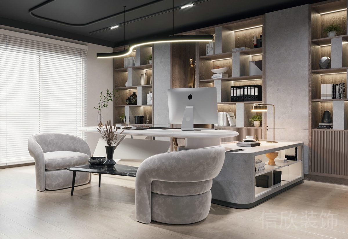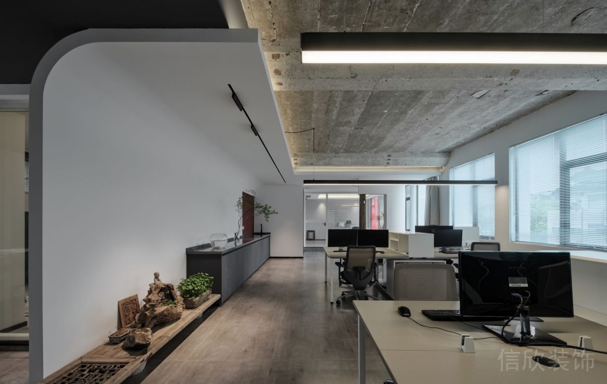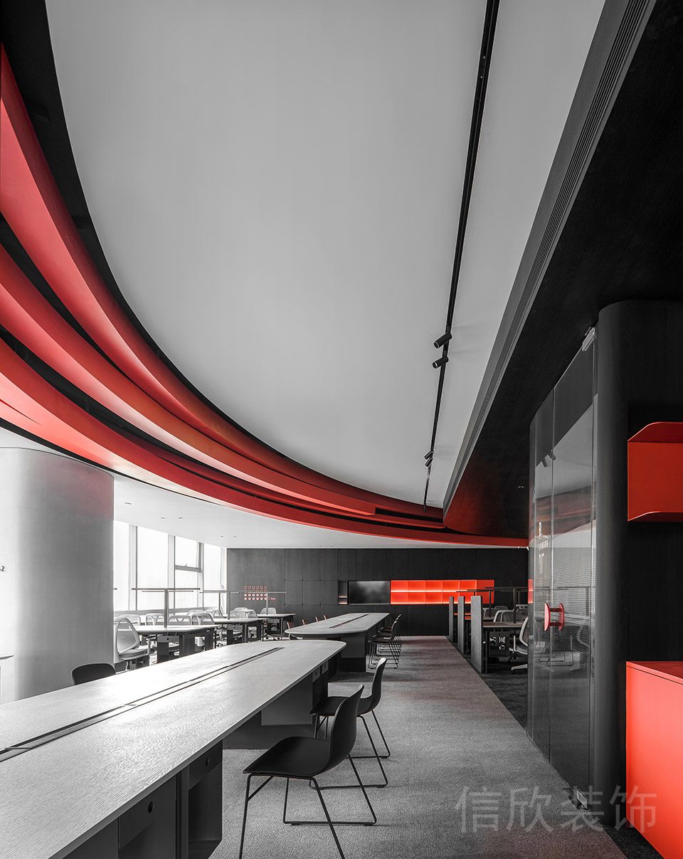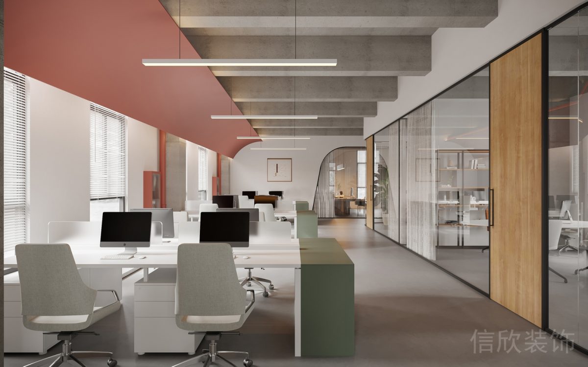現(xiàn)代風格辦公室裝修設計效果圖,簡約輕奢的裝修風格,在滿足使用功能的前提下,摒棄多于的裝修裝飾。色彩多采用黑白灰等無彩色,裝飾多采用簡潔直線條,材料多應用現(xiàn)代工業(yè)所生產(chǎn)的裝修材料,如玻璃、地毯、各種金屬材料等。辦公卡座較少應用帶屏風的卡座,一般采用簡單的鋼木結(jié)構(gòu)辦公卡座,對坐模式。此類裝修風格優(yōu)點:裝修費用低,裝修快捷工期短,辦公室利用率高,是公司辦公室裝修中應用最多的裝修風格