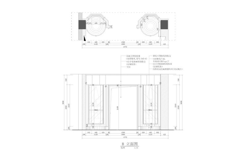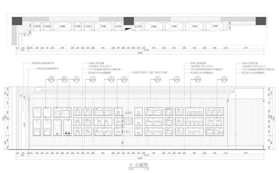 大廳的裝修設計,兩層采用齊平頂面的展柜,深色自然紋理的地面,和頂面相對應的半圓形展臺,這樣處理的好處的是對稱性的設計,使得整個空間感和對應效果更強。