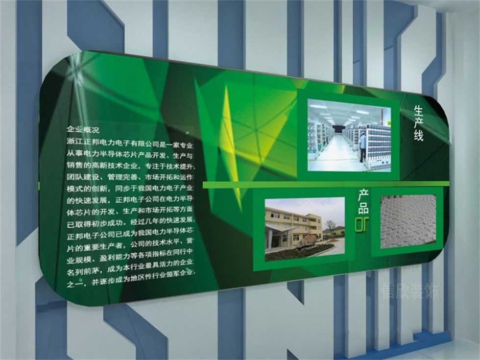 藍色藝術玻璃為基調,上面各種白色線條組成的背景,多層次的組合,給人的感覺,立體感更強烈,圓形圖案的不規則排列,既能表達出活躍的氣氛,又能讓客戶一眼注意到企業文化知識的宣傳背景墻。