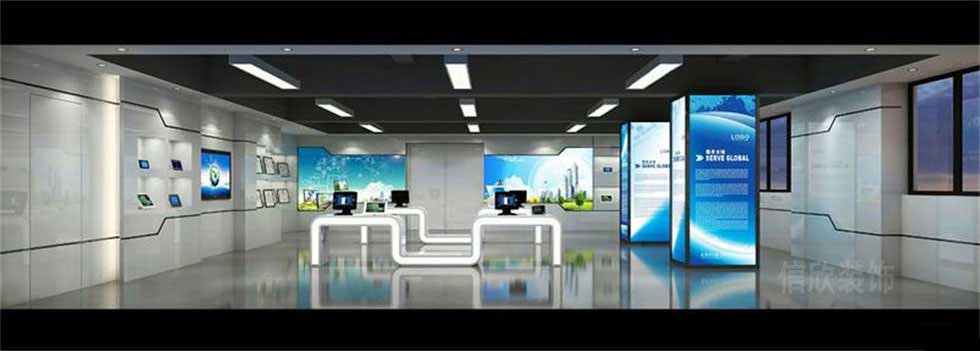 設計理念:本案是一所現代風格的電子科技公司展廳裝修設計案例,