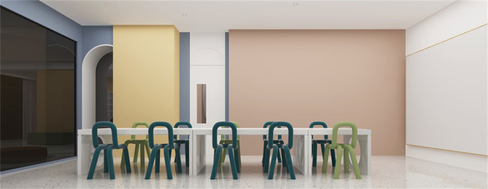 本案位于深圳市寶安區石巖兒童教育培訓教室,是一所北歐風的兒童培訓中心裝修設計案例,北歐風格與裝飾藝術風格、流線型風格等追求時髦和商業價值的形式主義不同,北歐風格簡潔實用,體現對傳統的尊重,對自然材料的欣賞,對形式和裝飾的克制,以及力求在形式和功能的統一。在建筑室內設計方面,就是室內的頂、墻、地三個面,完全不用紋樣和圖案裝飾,只用線條、色塊來區分點綴。