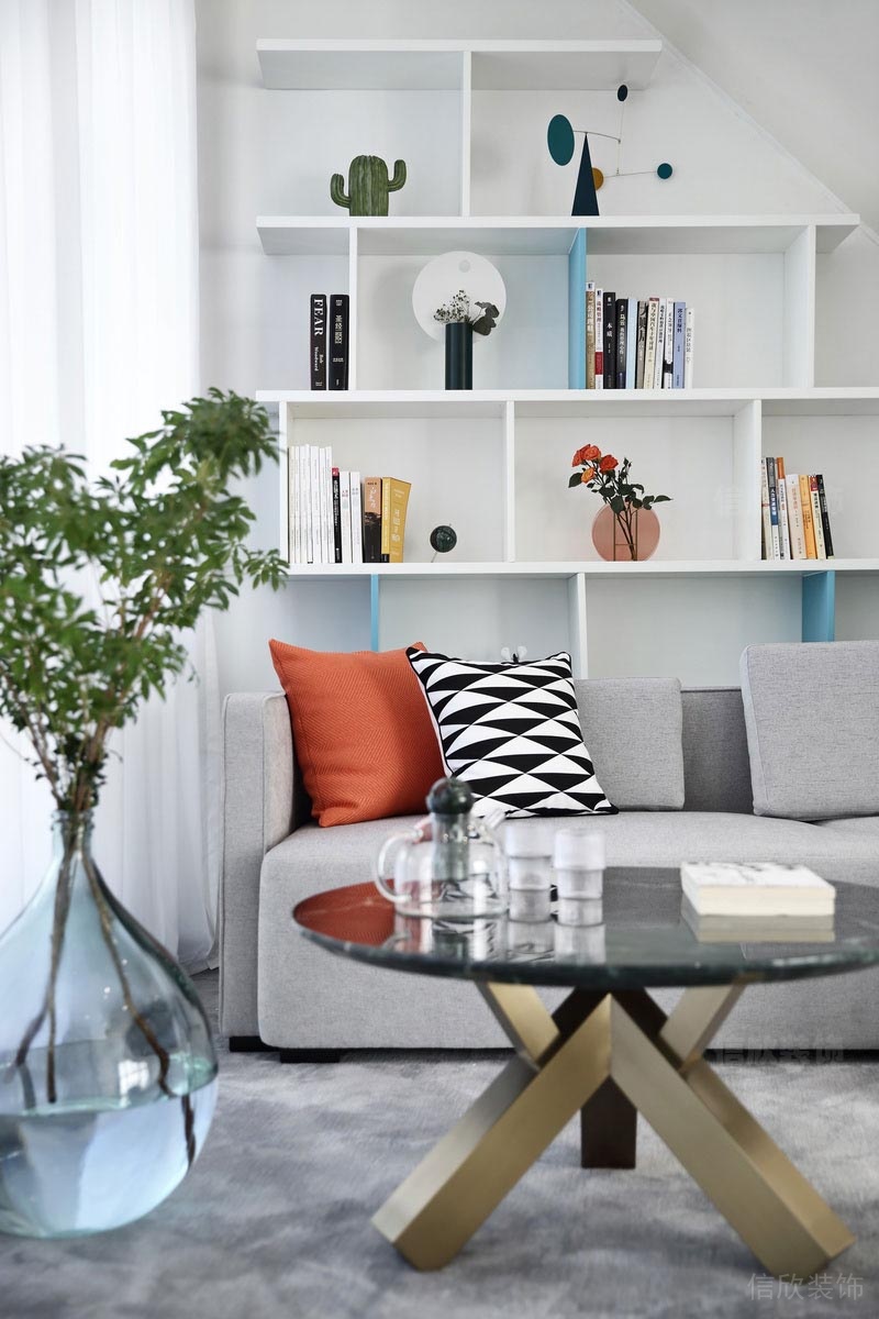 灰色的沙發,白色的書柜,現代黑色茶幾,在這里你可以享受到,最富足最精彩的閱讀時光。