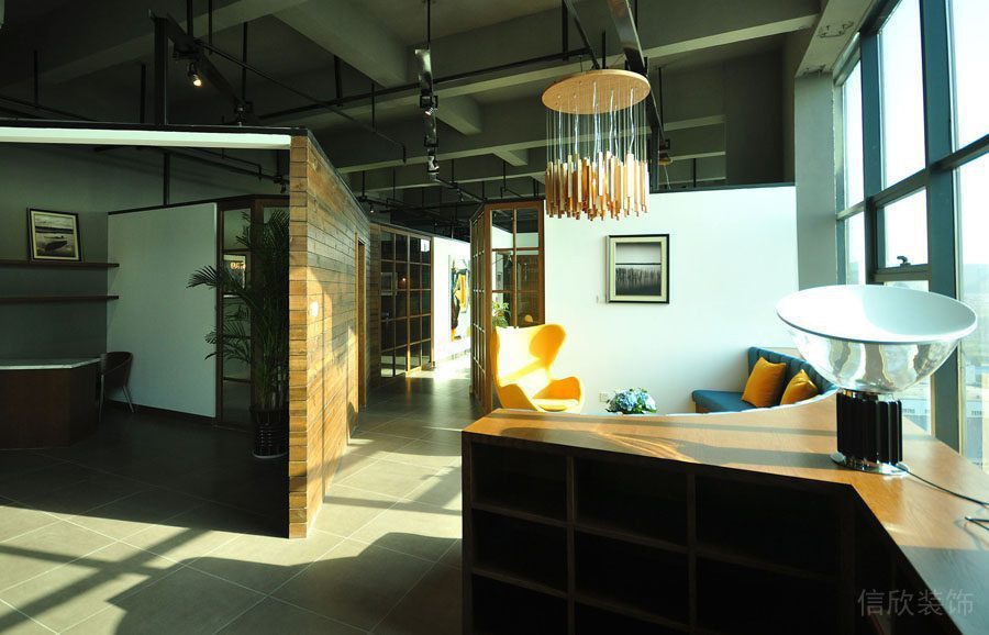 風(fēng)格定位:現(xiàn)代簡(jiǎn)約+活力工業(yè)風(fēng),以藍(lán)白為主色調(diào),局部點(diǎn)綴橙、黃,打造開(kāi)放、高效且舒適的辦公環(huán)境。