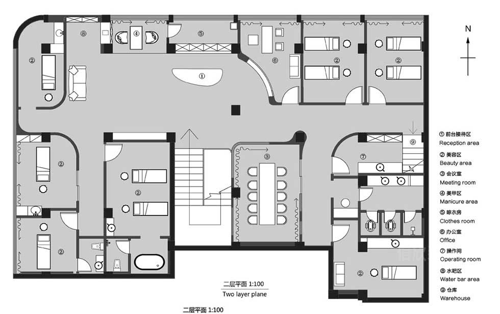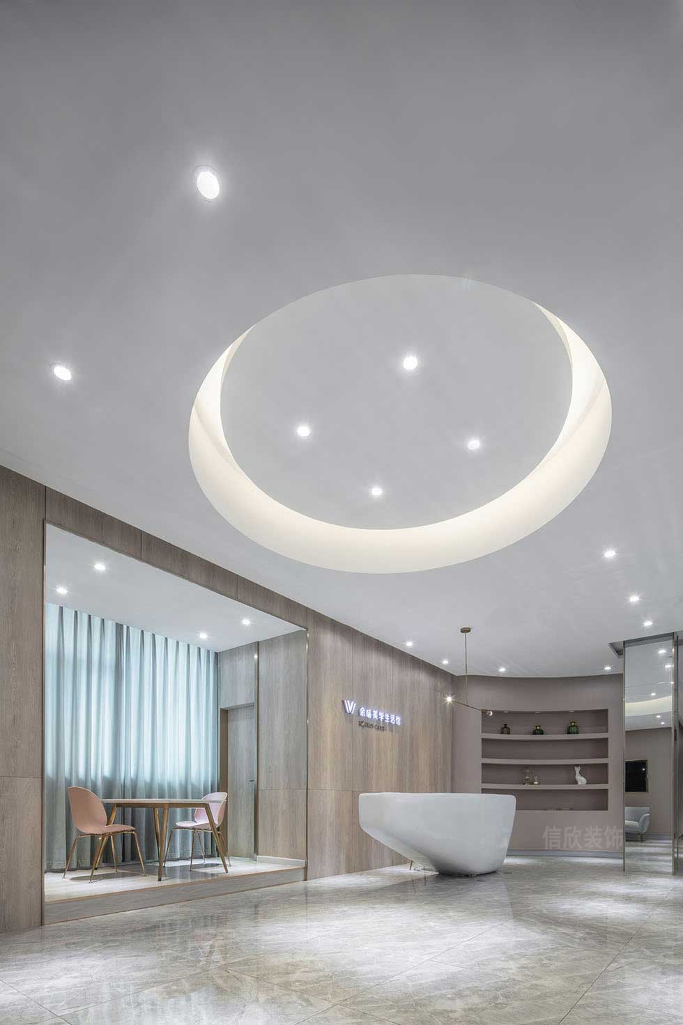 會議室采用通透的落地玻璃,讓大廳視野顯得更加開闊的同時,也使整個美容空間顯得更加的專業(yè)