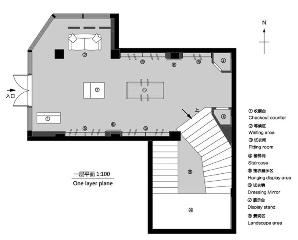 此隔斷墻區(qū)域,使室內(nèi)與室外的景致即分割開又有著緊密聯(lián)系,過往行人隱約可見隔斷墻體間隙中透露出的空間、人影及動作。吸引著行人的好奇心,激發(fā)人