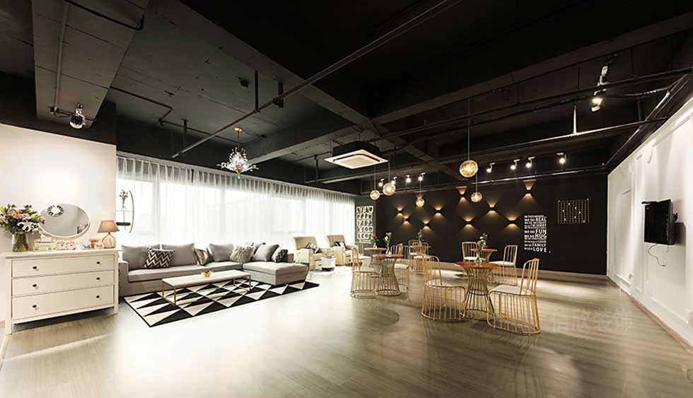 設計理念:黑白灰色系是工業風格給人的視覺第一感受,黑色與白色的碰撞給人一種神秘與冷酷氣質,灰色與黑白協調可以創造出很多變化。我們看到的工業風裝修無論在家庭中還是辦公場所都會給人這種視覺上的冷酷感。