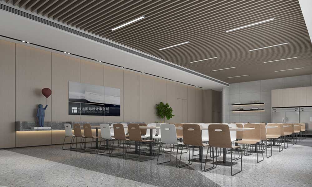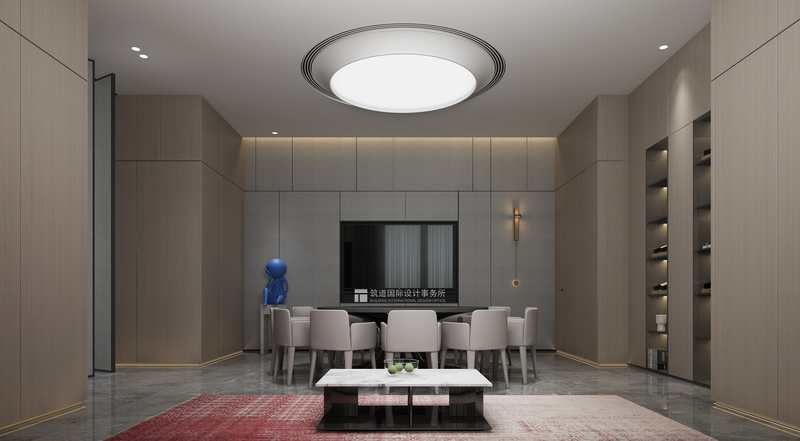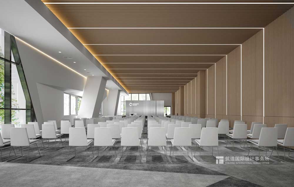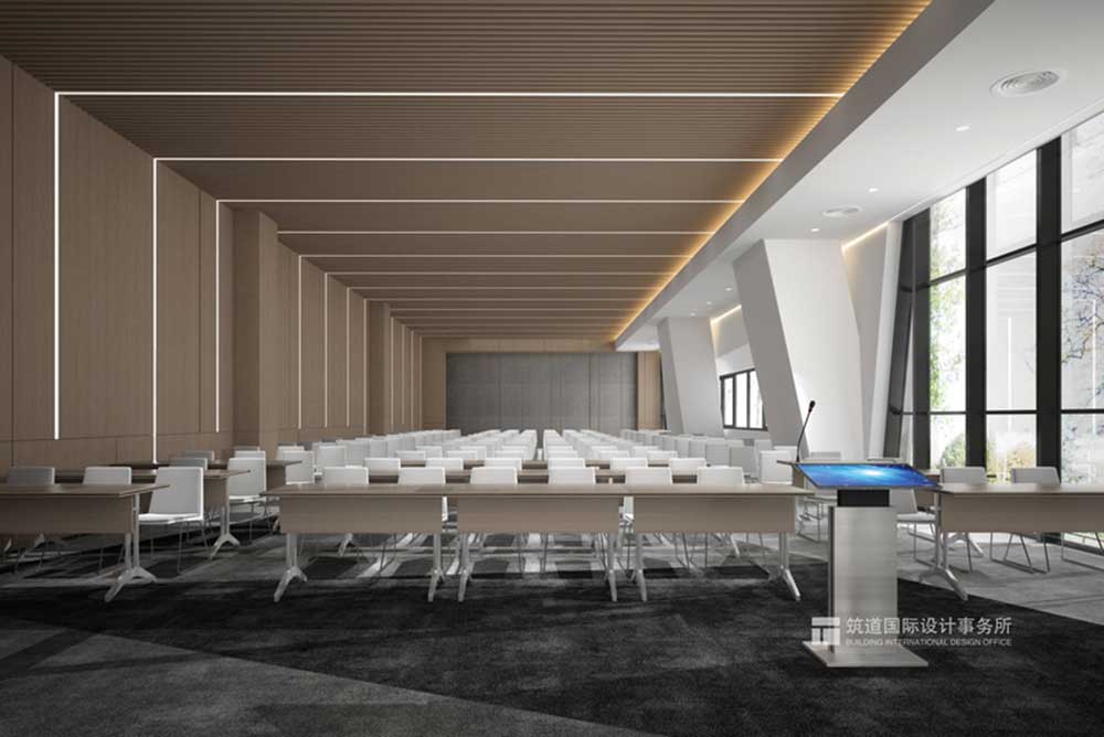 一層丨報告廳 報告廳以白色色調(diào)為主,米灰色色調(diào)為輔,更加突出會議室的嚴(yán)肅、大氣、干凈、利落。