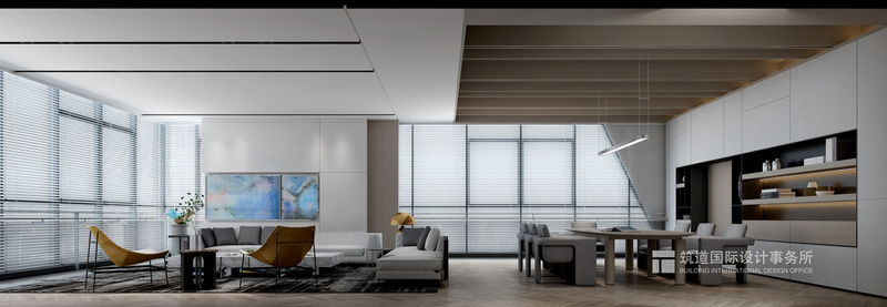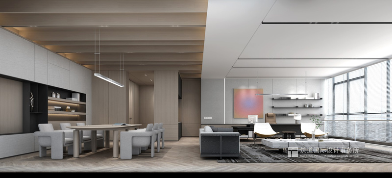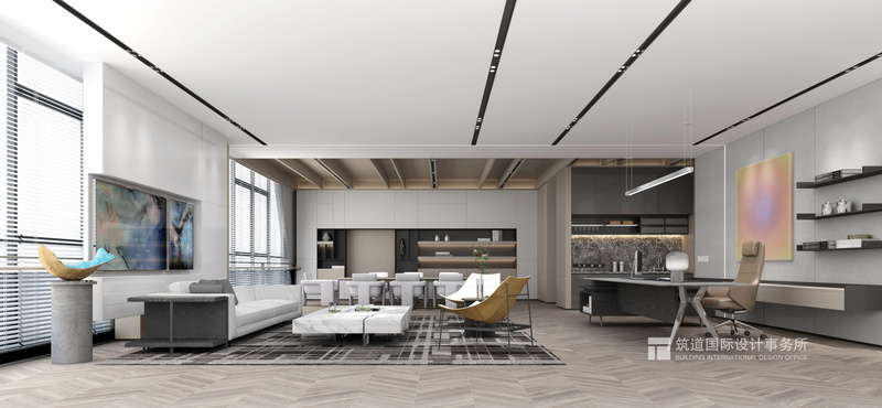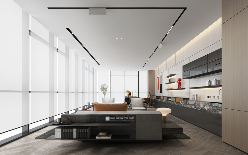 二層丨董事長辦公區(qū) 董事長辦公室,相對與客區(qū)更強調(diào)獨立性,透明落地窗搭配白色窗簾,私密之余留有空氣感。滿足多種商務(wù)洽談場景和需求。