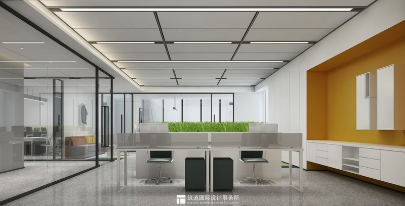 二層 | 經(jīng)理辦公室 純白與黃橙色的相互拼接碰撞,在嚴(yán)肅的工作環(huán)境中注入了活力。