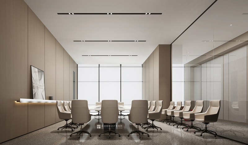 三層 | 視頻會議室 墻面色彩和軟裝相呼應(yīng),冷色調(diào)為主,體現(xiàn)出會議室的嚴(yán)肅。