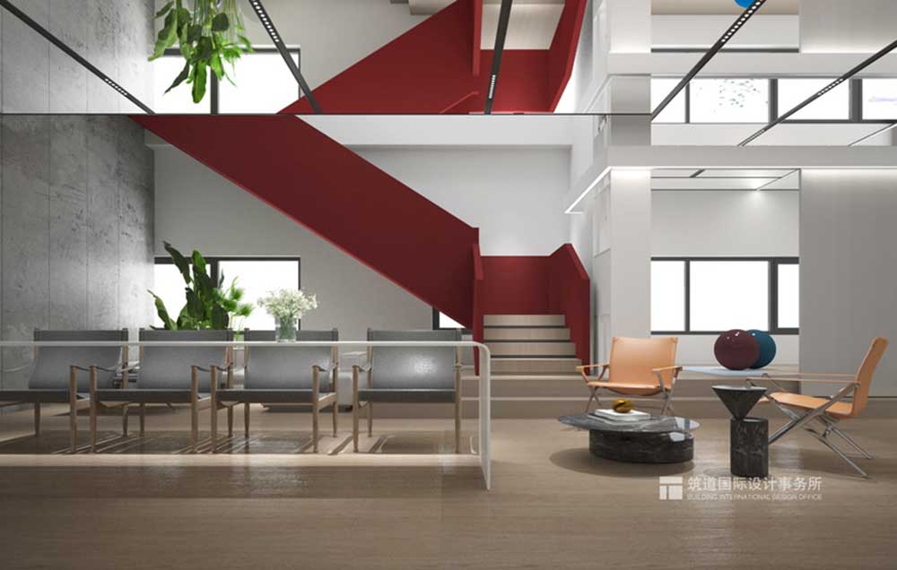 二層丨休息區(qū) 休息區(qū)是年輕員工的聚集地,以灰白色調(diào)相互運用,給予整體空間清爽而簡約。 員工可以在這里休憩聊天,也可以隨時隨地的辦公,讓辦公場地不再局限,更加高效。