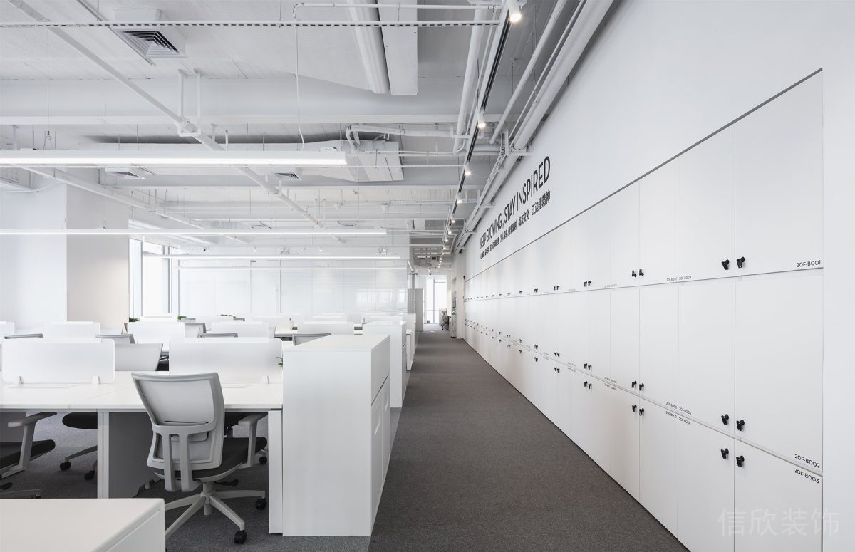 設置獨立的區域用于工作,使用啞光白色的工位設計,令環境更具現代感。