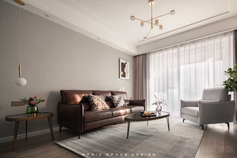 ?深圳龍崗布吉北歐簡(jiǎn)約風(fēng)舊房翻新改造裝修,設(shè)計(jì)師有意強(qiáng)化區(qū)域的結(jié)構(gòu)和色彩,通過(guò)一組金屬色的吊燈恰到好處的將虛實(shí)關(guān)系勾勒出來(lái)。