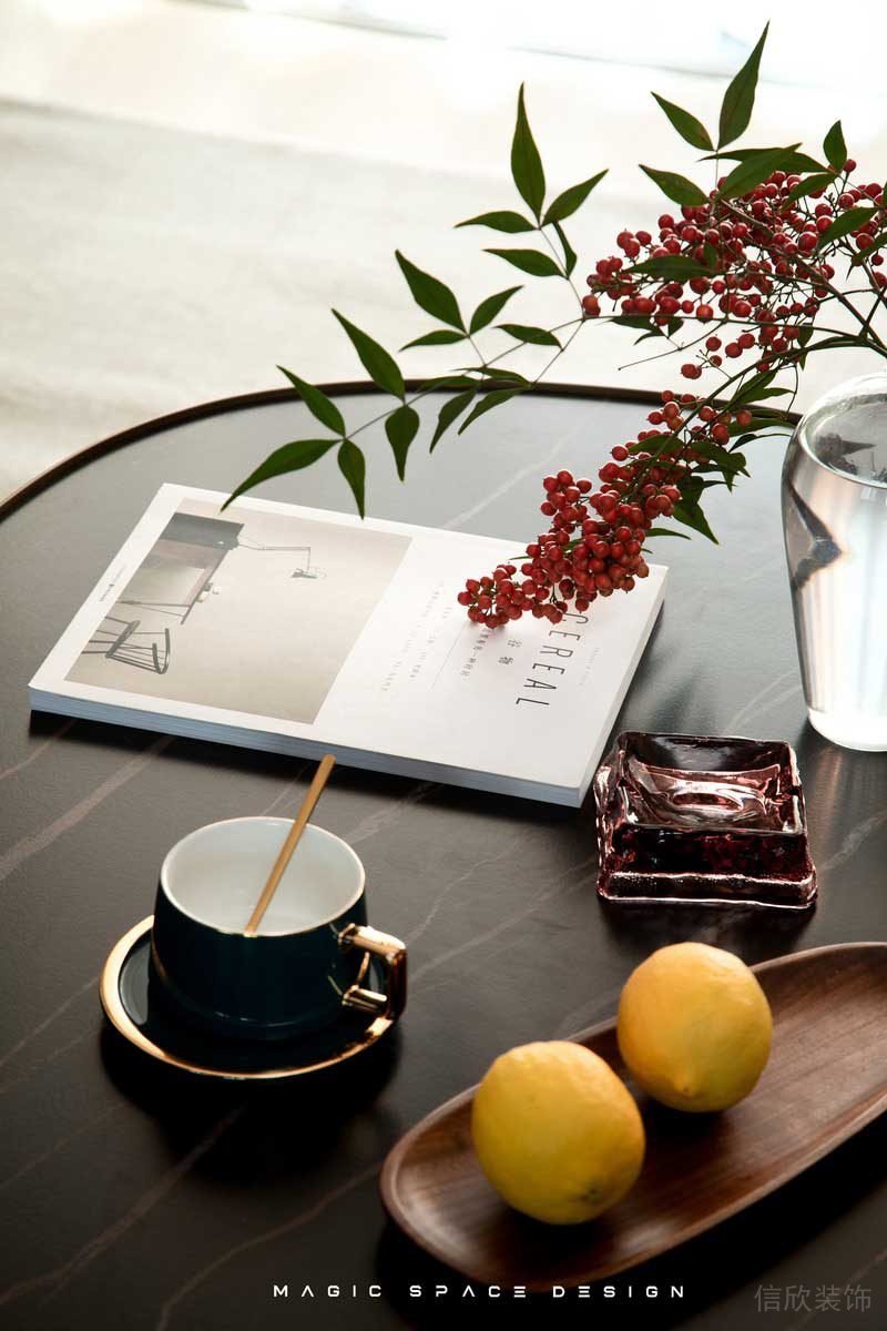 相對(duì)充裕的空間和點(diǎn)綴式的顏色綠植搭配,雅致靜謐。