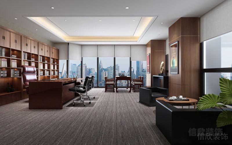古樸和簡約的設計理念,打造出的董事長辦公室,大開大合,四門通透,功能區設計一應俱全,現代實木家具展現其儒雅干練的作風,或在辦公桌前思考決策,或與客戶在品茗區欣賞美景,品一味古茶,或在黑色皮業沙發上沉思攀談, 在滿足一應需求的前提下,頗含海納百川之風。