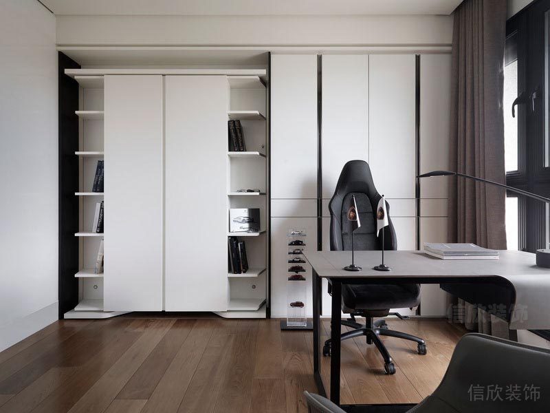 書房和臥室一體化的次臥,既方便休息,又能同時方便學習和閱讀;白色調的主題,簡單耐看,不會隨著歲月的流逝而過時。