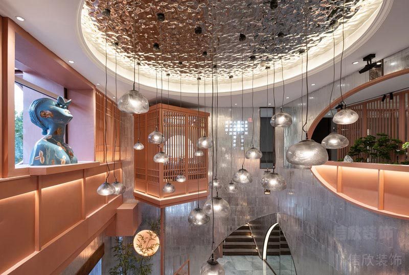 本案位于深圳市龍崗區是一所中餐廳的裝修設計案例,無論是中式家裝設計還是工裝設計,選擇整體色調都是首要問題。新中式餐廳設計在選擇整體色調方面是比較講究的,一般情況下,都以深色調為主。中式風格最大的特點就是莊重優雅、古香古色,而且現代餐廳設計基本都會融入一些現代化元素,如果想要呈現中式餐廳設計的獨特性,就一定要在大色調上下功夫。