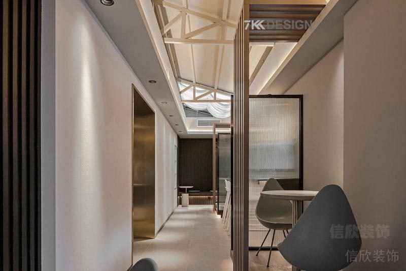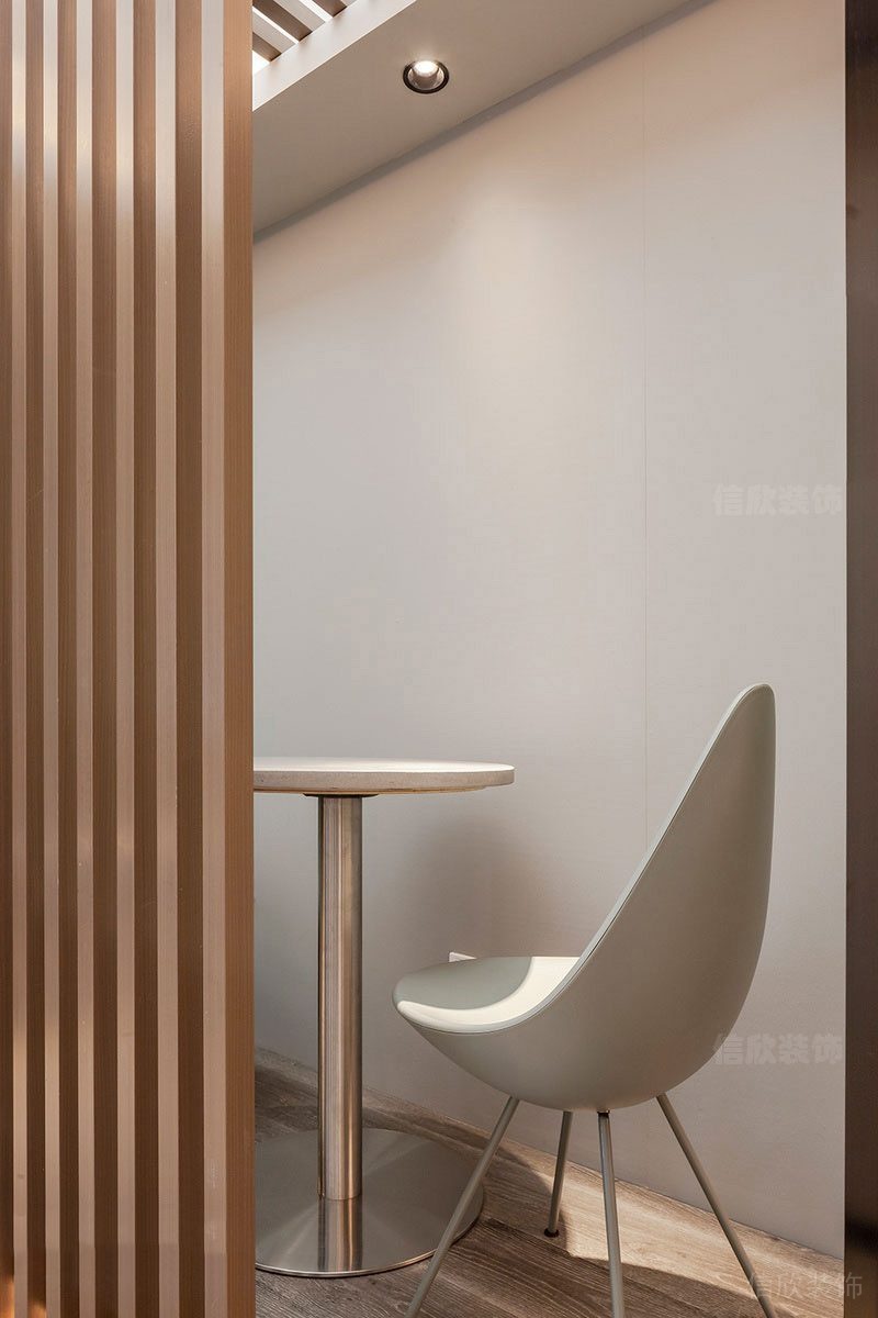以不同隔斷劃分區(qū)域間隔,軟裝搭配的桌椅擺放也別有心思。