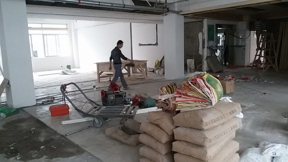 蓮塘國威路工業區118棟3樓整層裝修,雅仕公司,主要經營國內外外貿業務。辦公室面積1100平方米,??工程造價52萬,主要包含石膏板隔墻、玻璃隔墻、地面LG膠地板,地毯,天花、電路等。選定開工日期3月9日凌晨1點開工。