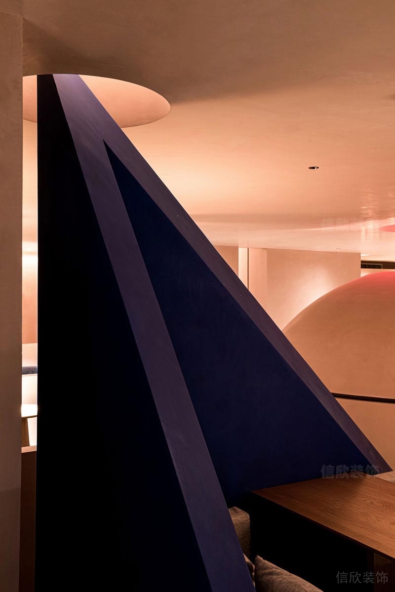三角形的造型利用,讓整個空間立體感強烈,充滿情趣,在暖光的照射下,宛如一副優(yōu)美的畫作。