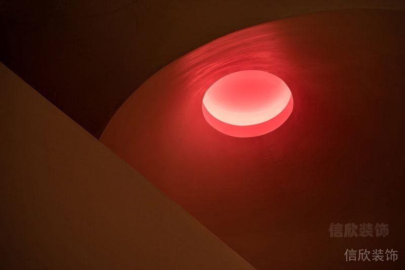 旭日東升,晶瑩剔透,燈光和墻體的顏色,襯托出層次感分明的由紅至橙的日出樣子,暖意慢慢爬上人的心頭,仿佛眼前浮現(xiàn)出那深沉的墨西哥日出的畫面,耳邊響起那首古老而熟悉的墨西哥民謠。