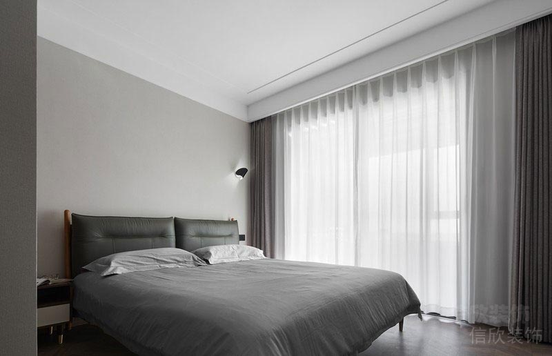 繼續延伸主臥的設計格調, 白墻、灰調、木飾面、自然光, 經典才是時尚, 精致簡約的現代主義, 沉靜不失溫馨的品質睡眠。