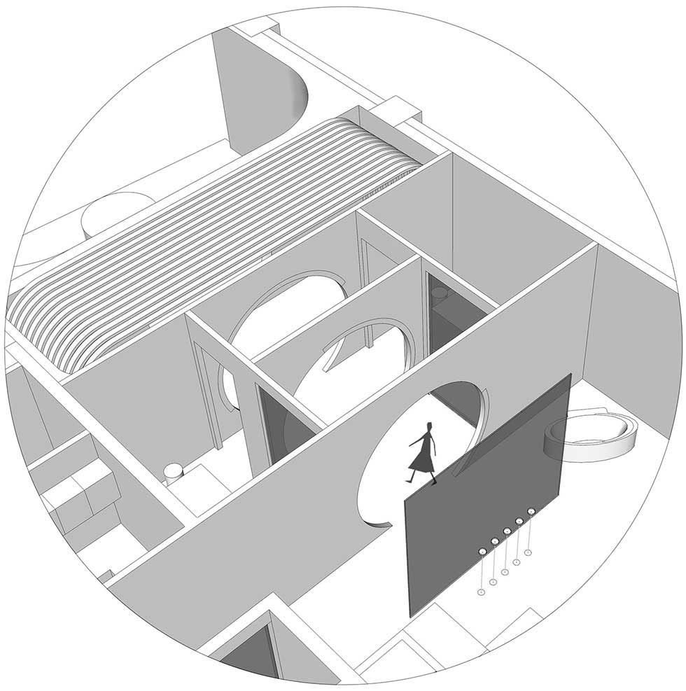 ▼帶光圈的弧形門洞形成一條“時光隧道”