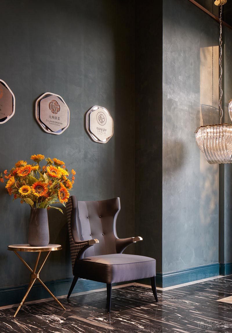 本案位于深圳市南山區是一所中式餐廳的裝飾設計案例,中式風格的客廳具有內蘊的風格,為了舒服,中式的環境中也常常用到沙發,但顏色仍然體現著中式的古樸,中式這樣表現使整體空間,傳統中透著現代,現代中揉著古典。這樣就以一種東方人的‘留白’美學觀念控制的節奏,顯出大家風范,其墻壁上的字畫無論數量還是內容都不在多,而在于它所營造的意境。可以說無論現在的西風如何勁吹,舒緩的意境始終是東方人特有的情懷,因此書法常常成就這種詩意的手段。這樣躺在舒服的沙發上,任千年的故事順指間流淌。