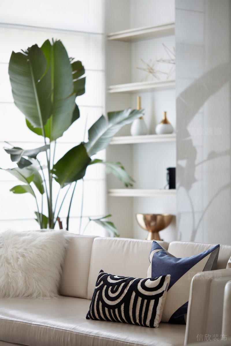 白色為主色調(diào)的客廳,搭配皮藝白色沙發(fā),明亮寬敞,觀感十足,簡(jiǎn)約的唯美。