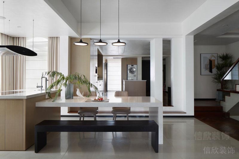 清幽的白墻,魚骨的深色地面,現(xiàn)在感十足的裝飾,輕裝修重裝飾的奢華品味。