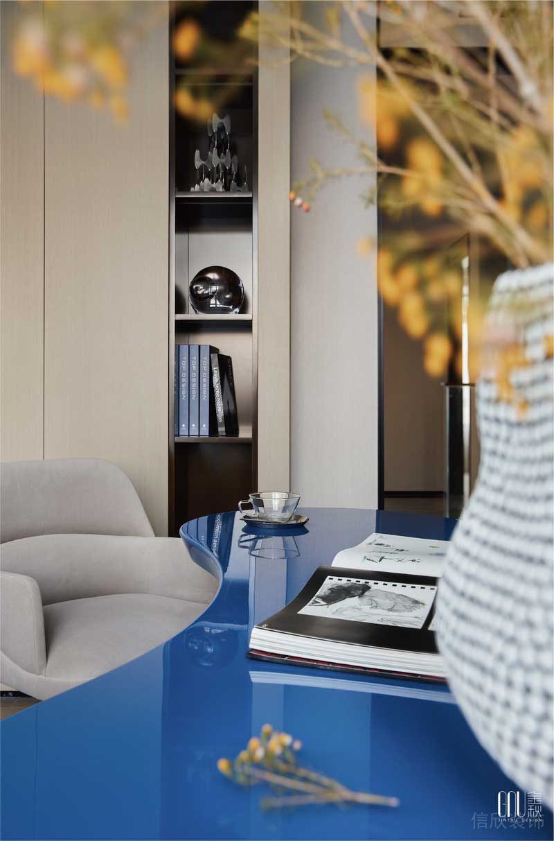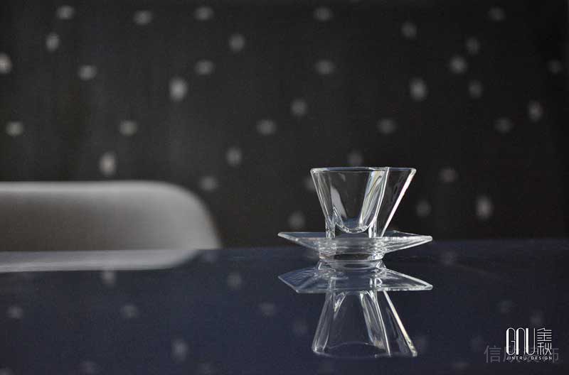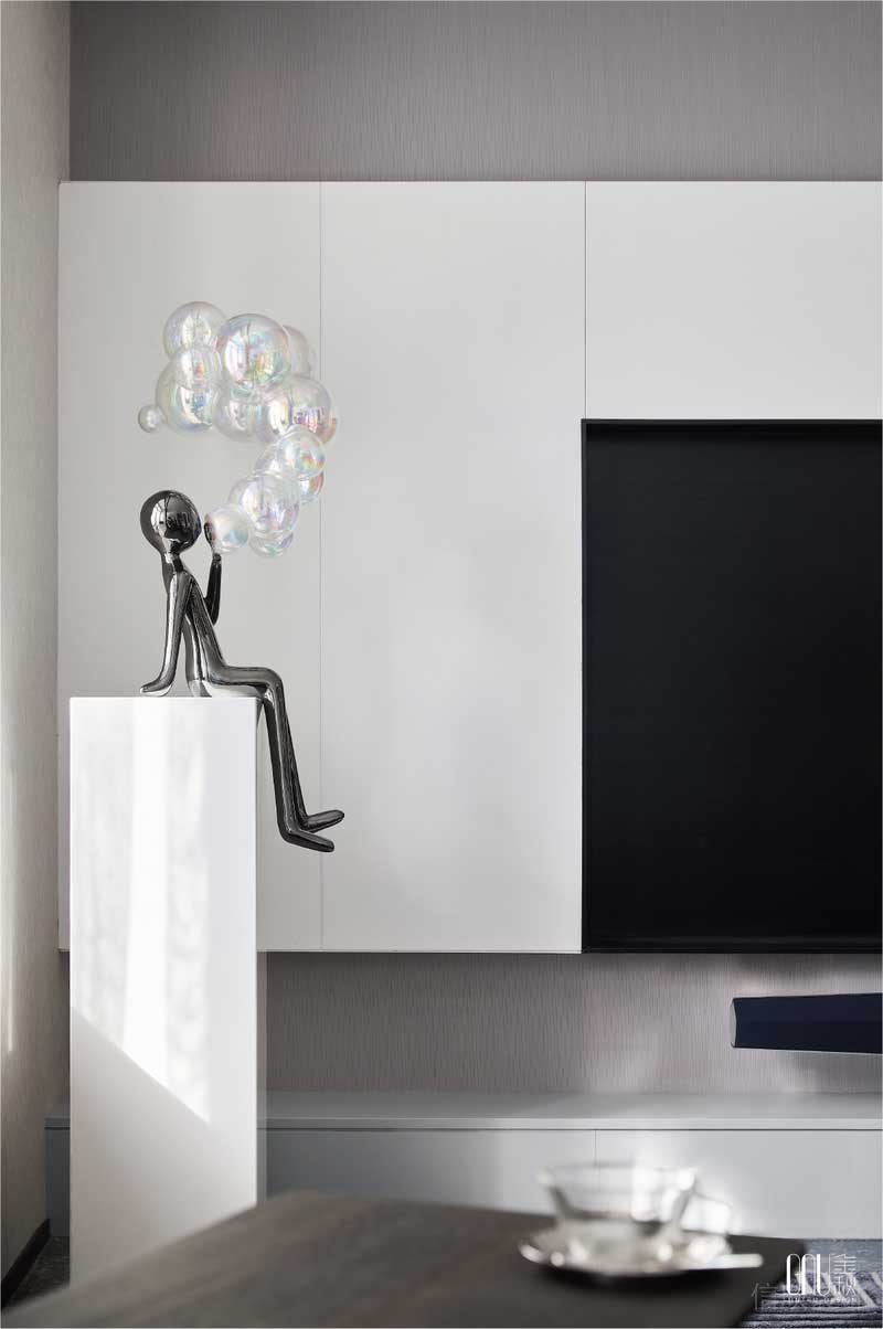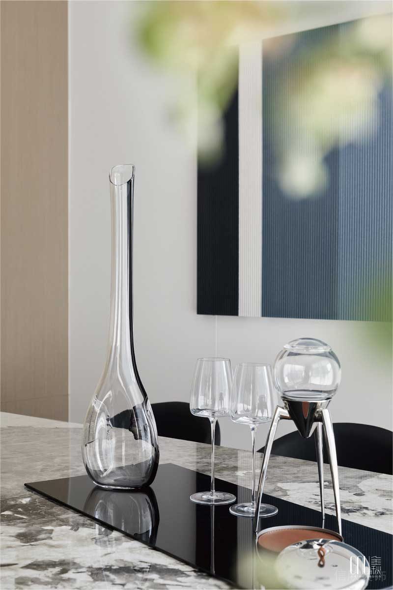白色石膏線條的頂面,直通式的設計,空間開闊,寬敞大氣,黑色大理石地面,神秘而冷酷,搭配陽臺猶如流水般的地面,仿佛真的在緩緩流淌,黑白分明的理念,詮釋極簡的優雅。