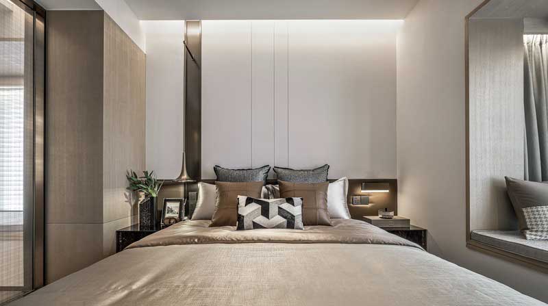 臥室最私密也是最自我的空間, 空間與布局的整體感便是安全感的最終表現(xiàn), 米色系與白色與自然光線融為一體, 白天溫暖舒適 夜晚詩意朦朧, 整個空間溫馨又不失意境, 搭配精心選擇的飾品, 提升整個臥室的自我風格。