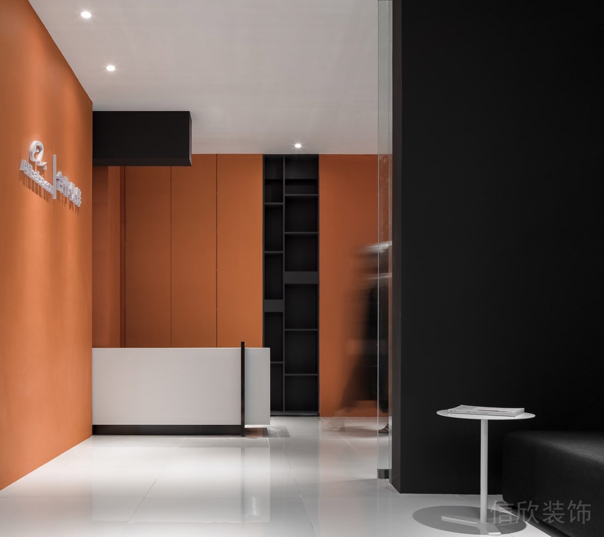 深圳騰飛旅游辦公室裝修設計采用了以黑白為主色調的現(xiàn)代簡約風,大面積的黑白低調沉穩(wěn),極簡的色彩與設計感極強的吊頂搭配,高端大氣。