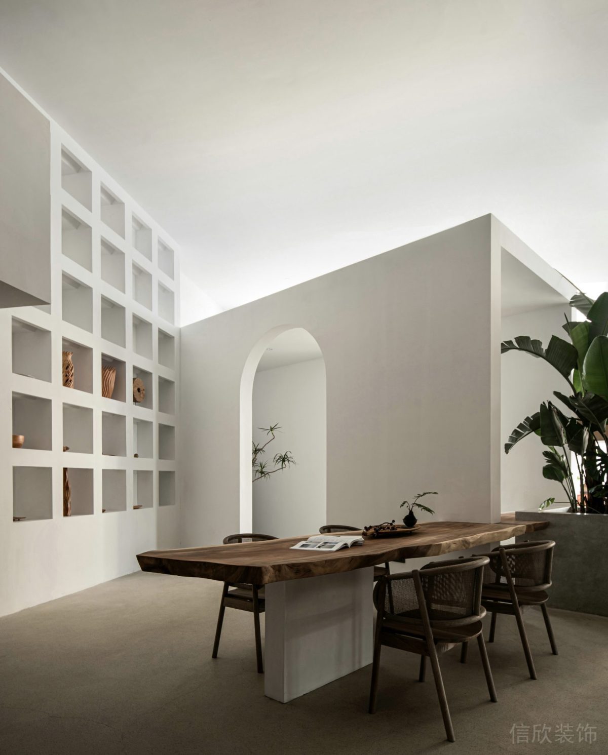 設(shè)置舒適的沙發(fā)和休閑桌,配有植物和裝飾畫,創(chuàng)造放松的氛圍。