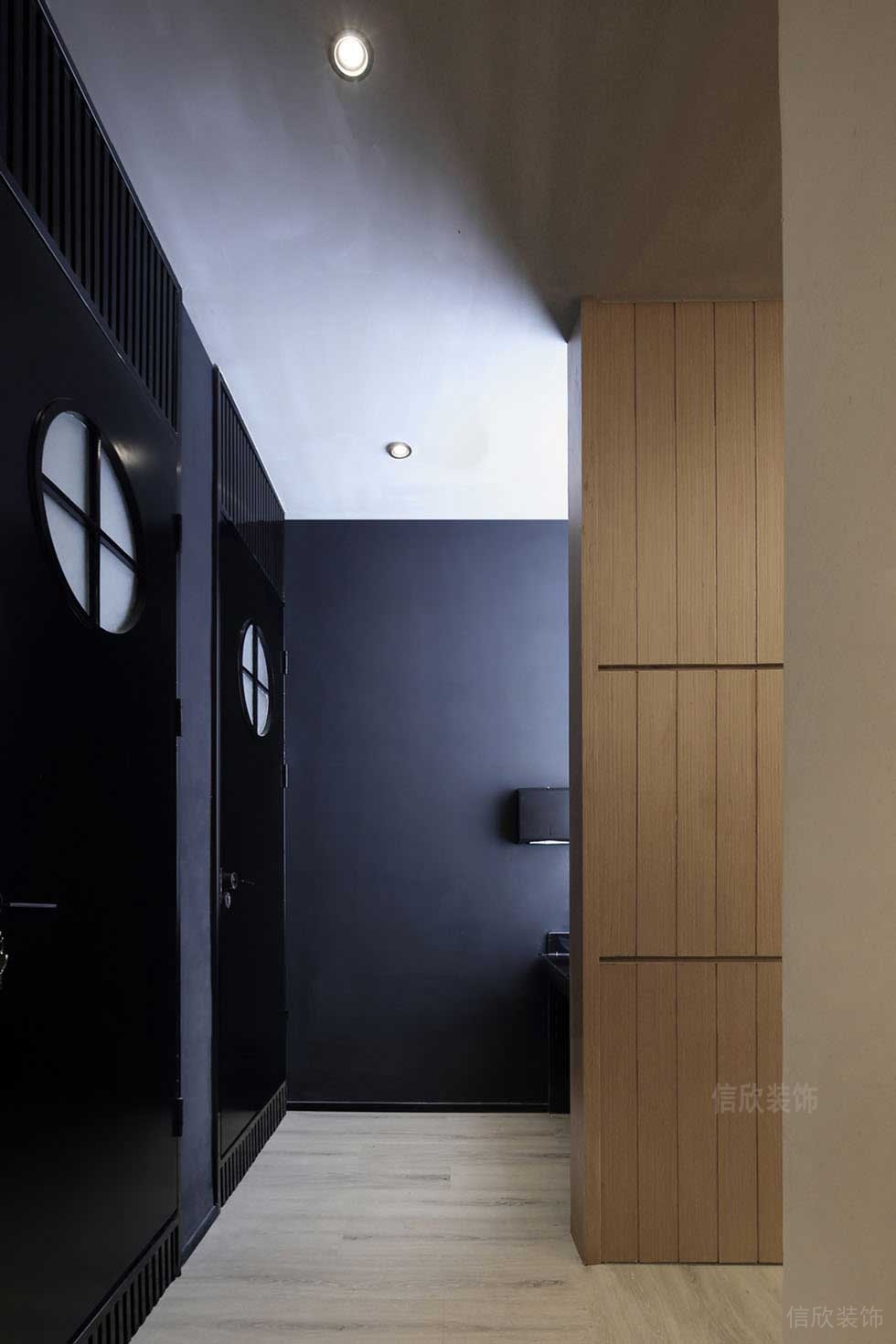 干濕分離的衛(wèi)生間,配色上選用高級黑,定制的門上點綴簡單的造型,兼具質(zhì)感與時髦感。