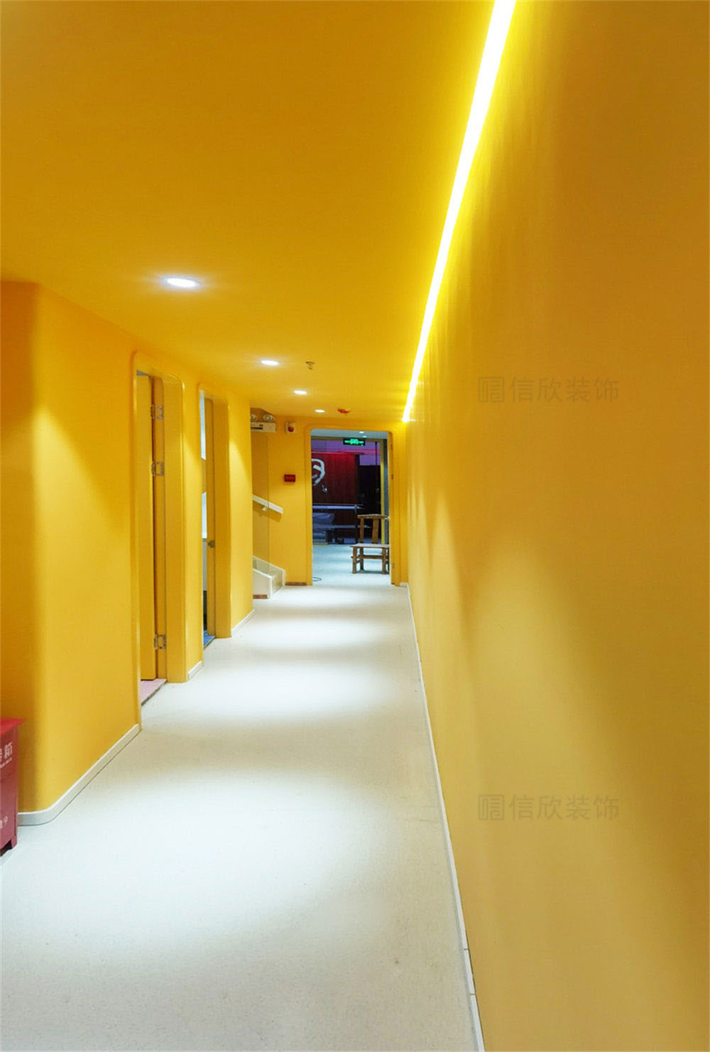 開闊式的前廳裝修設計,別致的造型,黃色的休息區隱喻著夏天的陽光,紫色的奇妙,鋼琴鍵一般的樓梯;可以讓進來的每一個人都沉浸在久違的孩子般的夢境里。