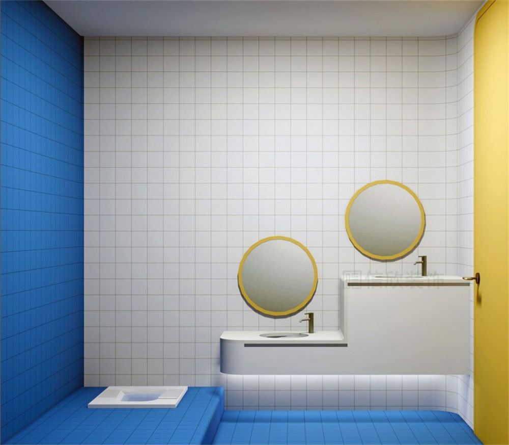 簡單的復古磚鋪設的衛生間,充斥著女孩粉紅色的公主夢,和男孩藍色如大海般的自由,白色凹凸不平的洗手臺,既從人體工程學中考慮了大人和孩子日常使用的方便;又增添了