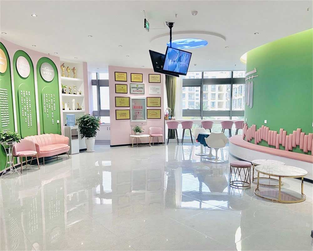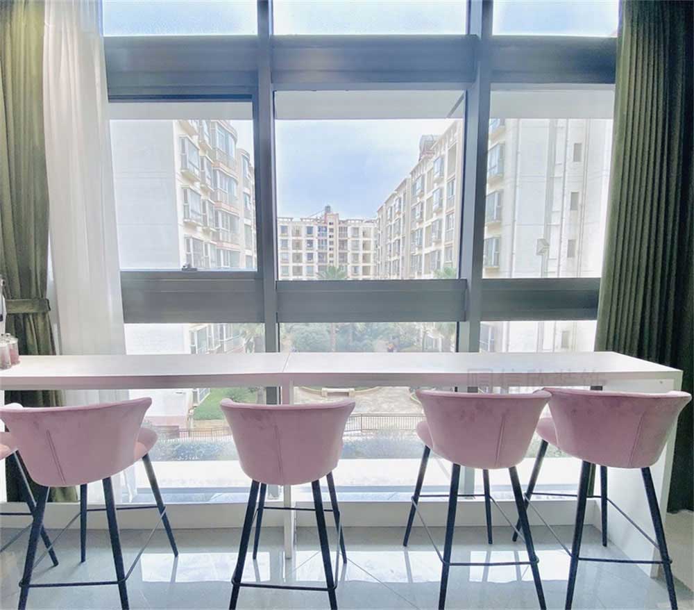 粉色的走廊,磨砂的玻璃隔斷,卡通可愛,并且保證了一定的私密性和唯美的感覺。