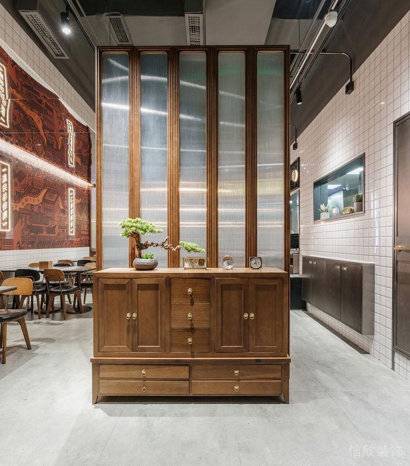 本案是位于深圳龍華的一家餐廳裝飾設計案例。整體是一家懷舊的港式茶餐廳裝修風格,在很多90后,00后的年輕人,可能對這類的裝修風格基礎非常少,但是對于經歷過這個時間斷的人來說,就比較親切了。中式的元素貫穿整個店面,然后搭配了簡約的家具,墻面小方格的瓷磚鋪貼,都讓整個餐廳的效果做到了復古,懷舊的感覺,同時也搭配了一些現代的元素進去,也不至于讓餐廳過于的陳舊,以便適應當前人們的審美。