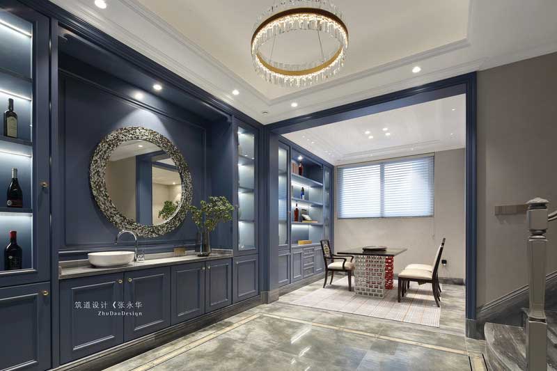 地下室為業主休閑娛樂的場所,從門廳進入是品茗區,經過一天的工作,業主回家可以在這品茶小憩,緩解疲勞。
