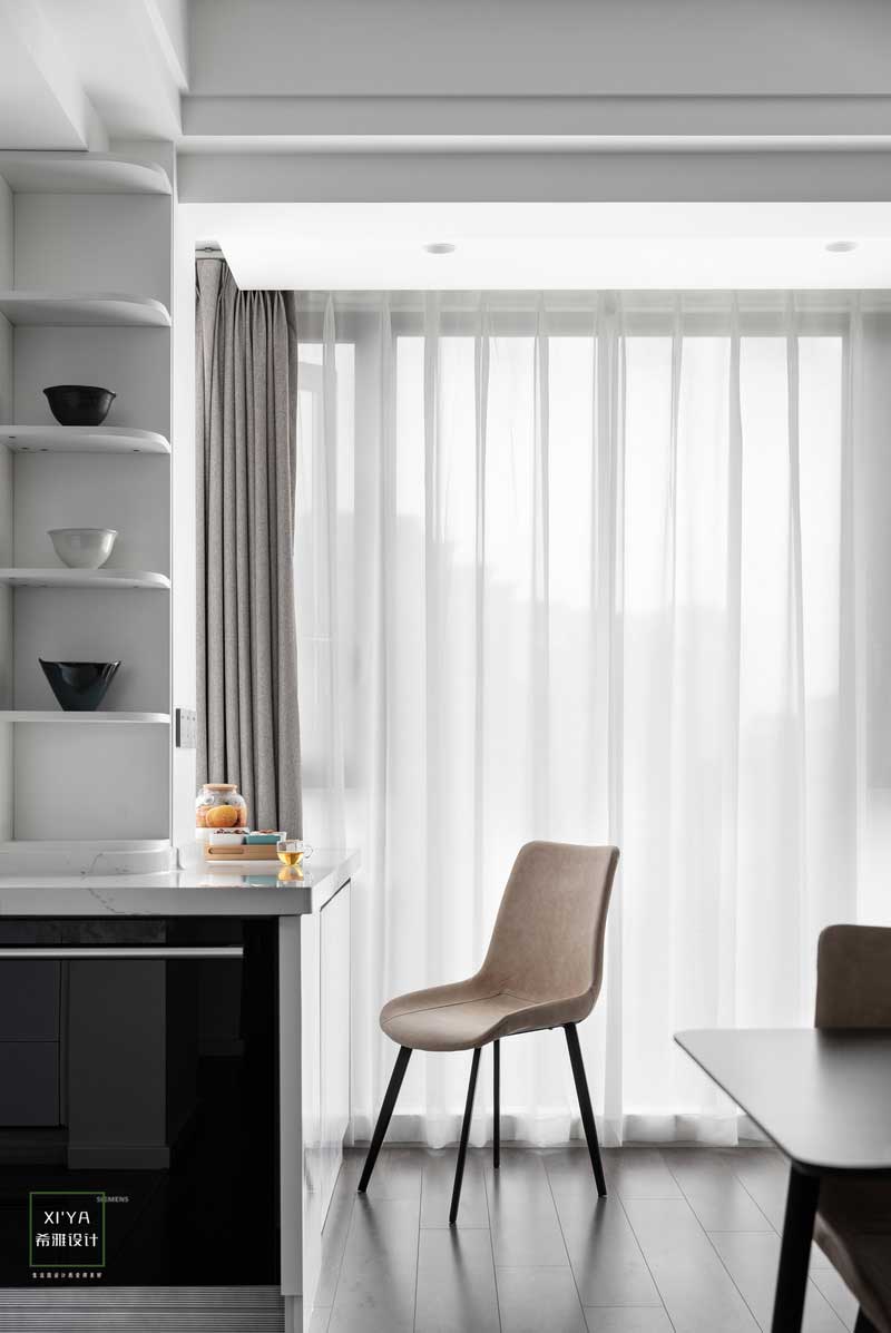 設計理念:本案是一所現代簡約風格的家居新房裝修設計案例,現代風格外形簡潔、功能強,強調室內空間形態和物件的單一性、抽象性。