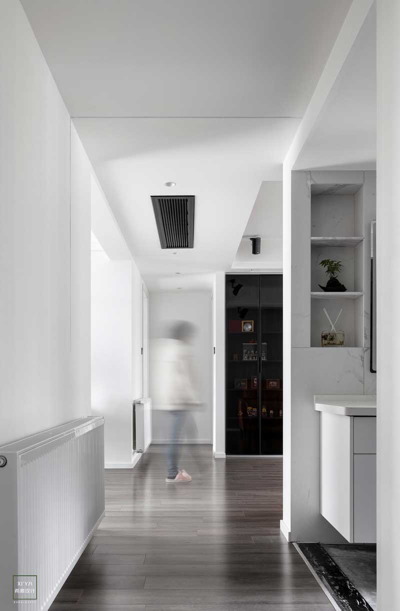 過道的設計,無頂式無多余裝飾的墻頂,用纖細的光影燈條,來詮釋一種光影靈動,線條活躍,直擊人心的動心,和立體韻味,賦予了整條過道一種全新的生命力。