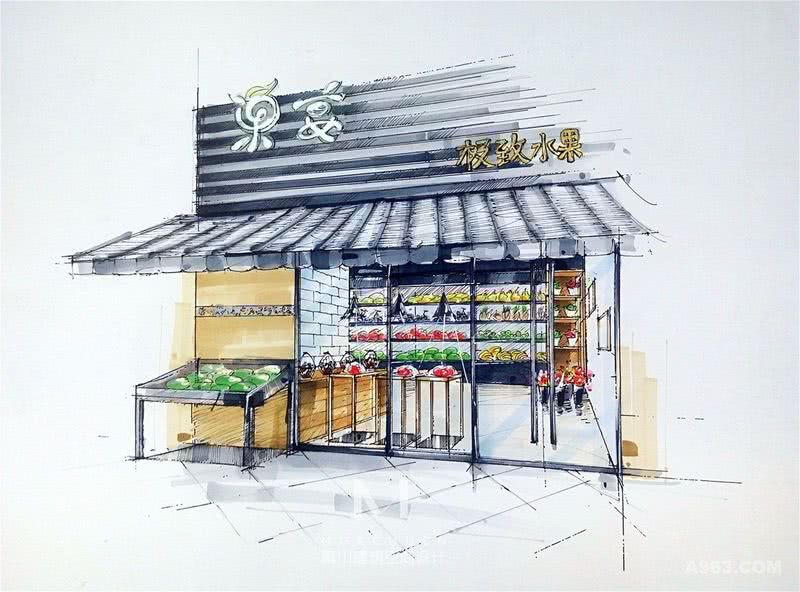 水果店的平面布置,整個區域的功能性劃分合理,使用效率高,同時加入了休閑區和冷飲區的理念,區別于傳統的水果店,給客戶帶來休閑和購物兩者結合的愉快體驗感。