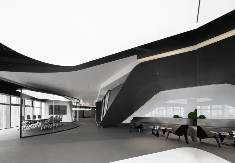 二十世紀(jì)藝術(shù)大師瓦西里·康定斯基在闡述點(diǎn)線面的抽象理論時(shí),曾提出從外在概念與內(nèi)在張力兩個(gè)層面的解構(gòu)方式,因而每一根獨(dú)立的線條或形狀都可以理解為一種元素,設(shè)計(jì)師在運(yùn)用線條語素時(shí),亦是將藝術(shù)張力融入空間之中。“往返于家和公司的人們,是城市間流動(dòng)的力量,塑造城市的同時(shí),成就自我。我們的設(shè)計(jì)以此為題,以流動(dòng)的線型語言,展呈商辦空間的未來性。”