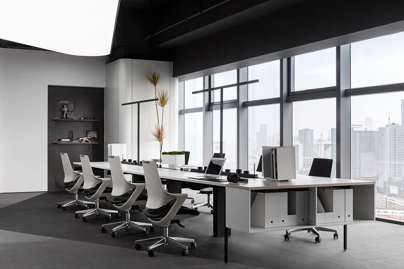 多元辦公模式與自由場(chǎng)景藝術(shù) 商業(yè)價(jià)值展示與未來辦公圖景 共存于此 | 在快速的城市化進(jìn)程中,在眾行業(yè)穩(wěn)步發(fā)展的前景下,當(dāng)下的商業(yè)集群、人居環(huán)境與辦公業(yè)態(tài),呈現(xiàn)出不斷聚合、逐漸升維的趨勢(shì),商業(yè)綜合體作為承載城市商業(yè)形象的超級(jí)名片,備受矚目。其中的商辦空間,亦是城市超級(jí)名片的重要組成部分,注重品質(zhì)感與場(chǎng)景化的辦公環(huán)境,越來越成為許多企業(yè)在日常辦公、高效協(xié)作、彰顯品牌、促成合作時(shí)的首要選擇。 與此同時(shí),除了常規(guī)的實(shí)用性、人性化、美學(xué)性等考量維度,設(shè)計(jì)師如何兼顧多樣化工作節(jié)奏、生活化配套空間、綠色環(huán)保訴求、現(xiàn)代科技運(yùn)用等多個(gè)方面,以理性的創(chuàng)意展現(xiàn)未來辦公場(chǎng)景,成為辦公展示層的設(shè)計(jì)挑戰(zhàn)與價(jià)值所在。知名室內(nèi)建筑師事務(wù)所 YuQiangPartners 便是深諳辦公空間設(shè)計(jì)的先行者,其最新落地實(shí)現(xiàn)的沈陽旭輝中心辦公展示層,是未來辦公場(chǎng)景的率先示范。