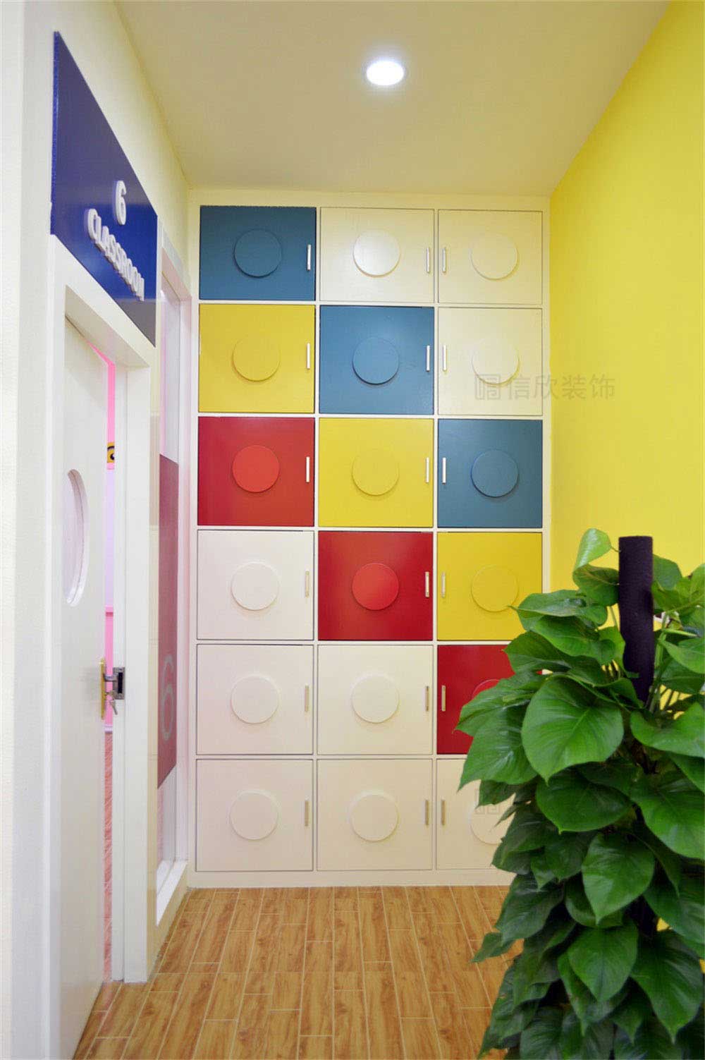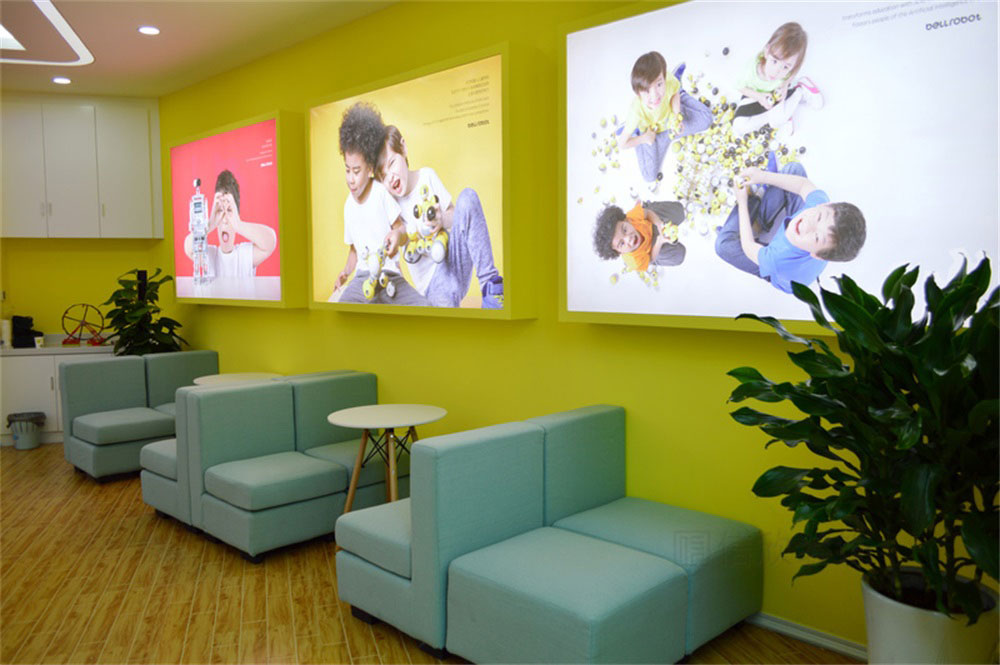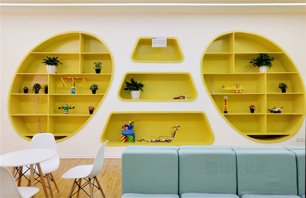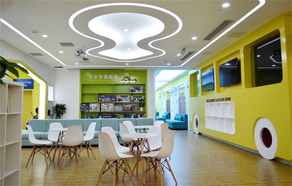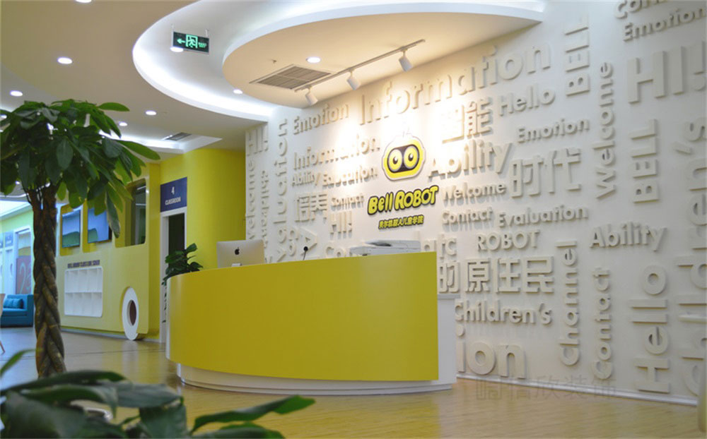 本案位于深圳市寶安區松崗貝爾機器人兒童學院培訓機構,是一所現代科技風的兒童學院裝修設計案例,針對兒童的教育培訓的裝修,在裝修時應多選擇簡潔大氣的簡約裝修風格,避開夸張視覺的另類風格,營造一個輕松明快的良好學習玩耍環境。風格、色彩、照明、裝飾等都要進行合理的裝修設計。