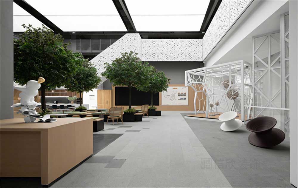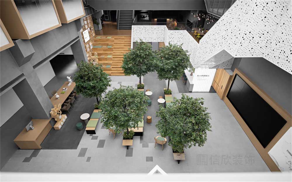 深圳市福田區(qū)石廈愛特路中南培訓(xùn)中心外景設(shè)計將室外場景,如公園,街區(qū)等在室內(nèi)還原并且優(yōu)化,以現(xiàn)代風(fēng)格為基調(diào)。色彩以2021年流行色-草木綠為主色調(diào),搭配硬裝大面積木制品和白色金屬面,凸顯自然,趣味,陽光。