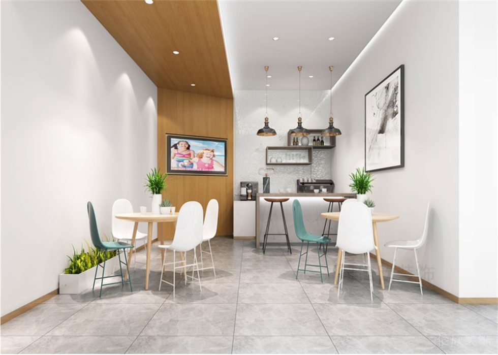 等候區的設計,主體由白色墻面和原木色飾面板構成,體現了北歐風簡單大氣,充滿自然原始之美的特性。